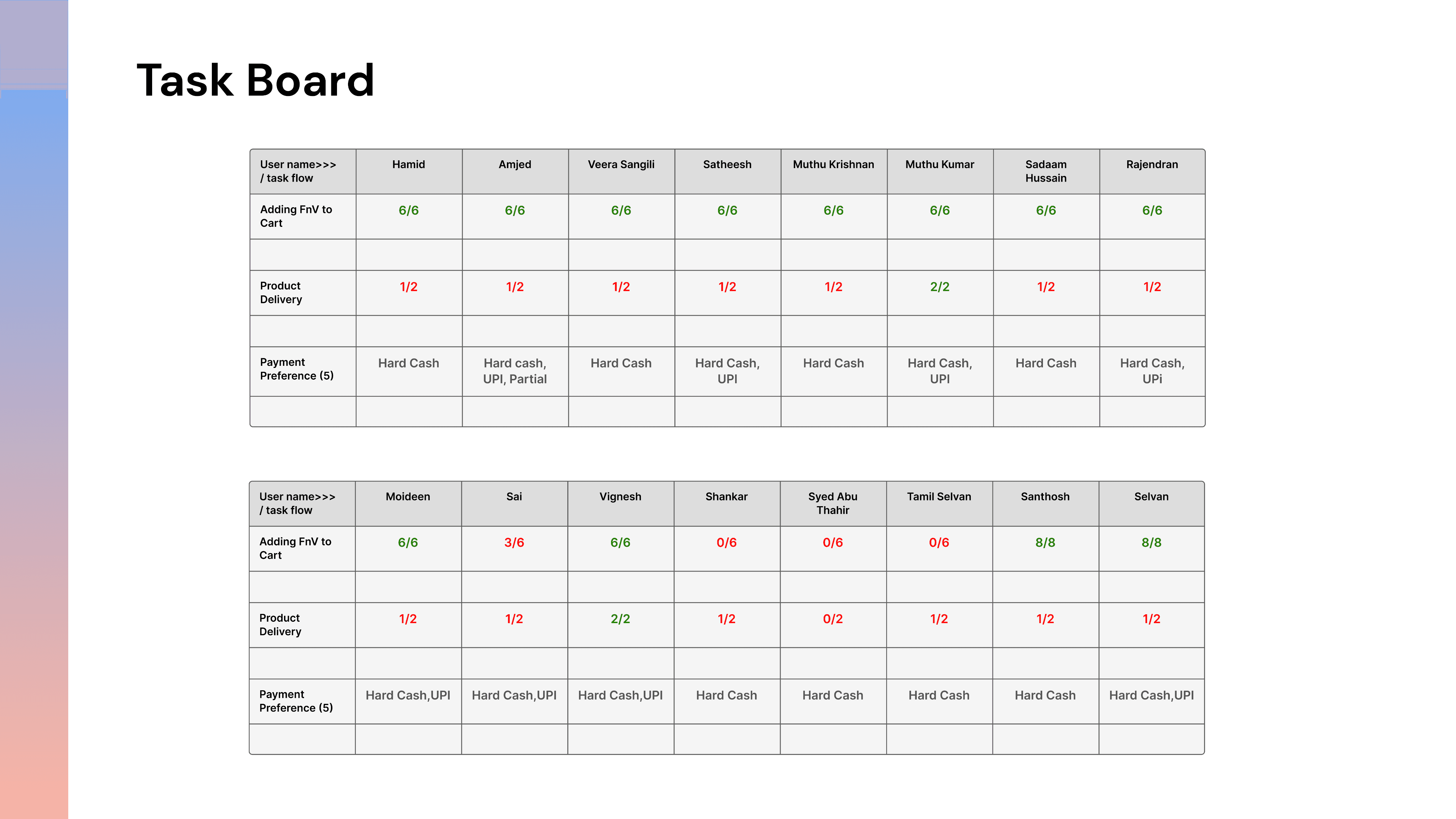 I had three important flows to notice. Adding the fruits and vegetables to the cart, product delivery, payment methods