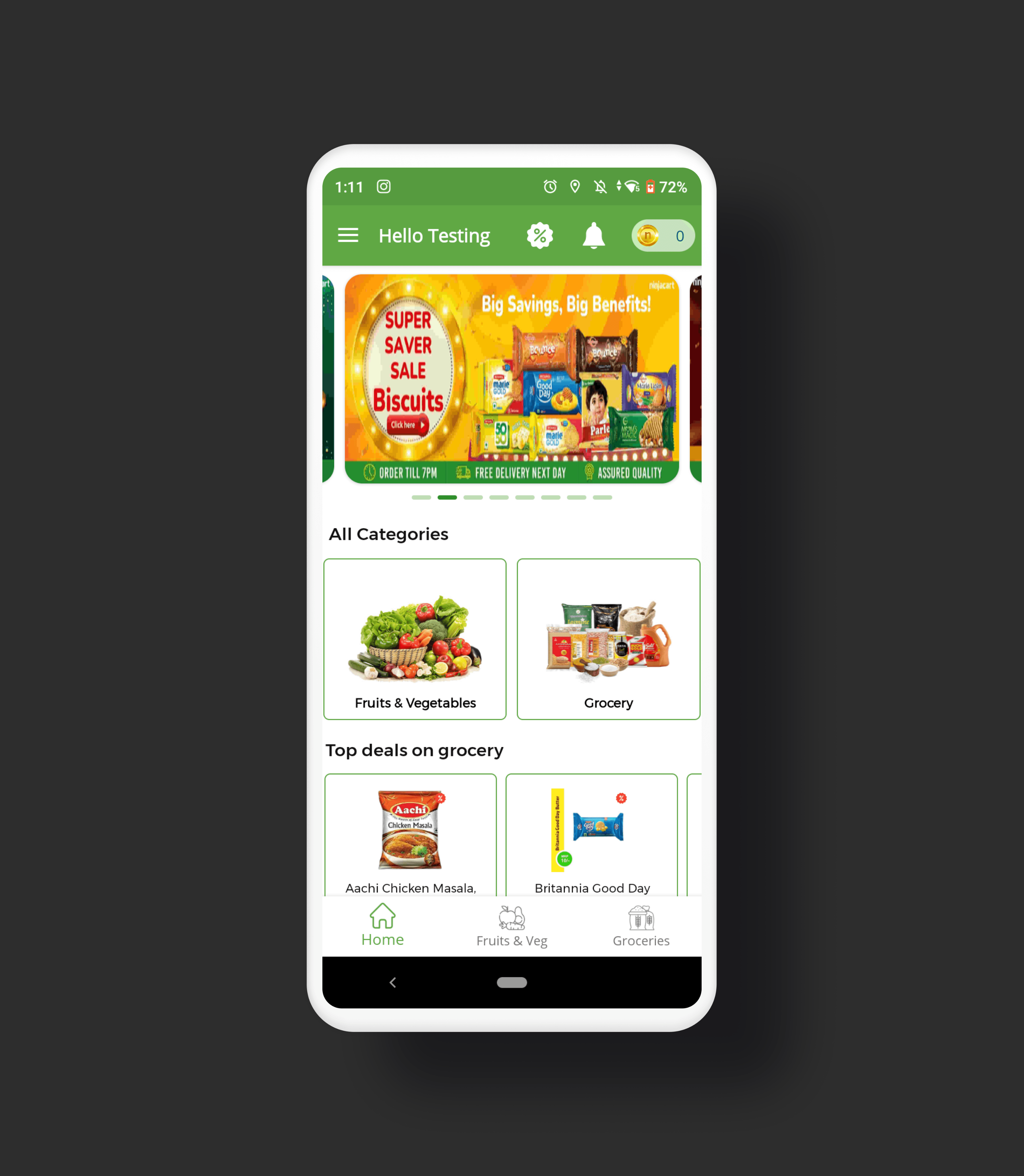 Ninjacart application is a B2B application which delivers farm fresh produces daily to the retailers.